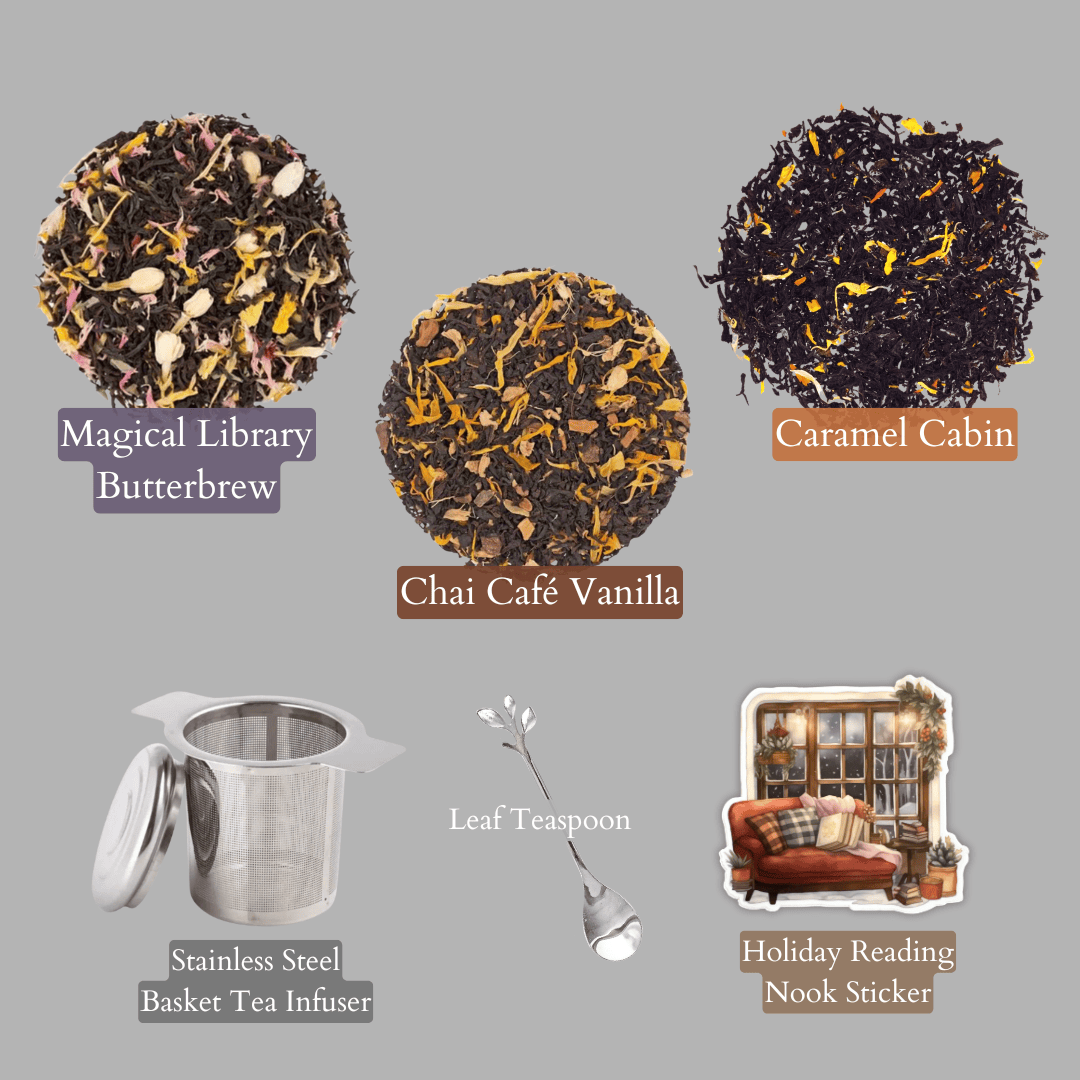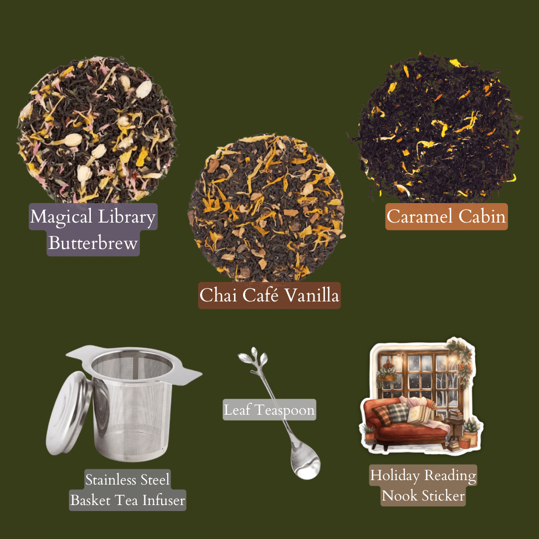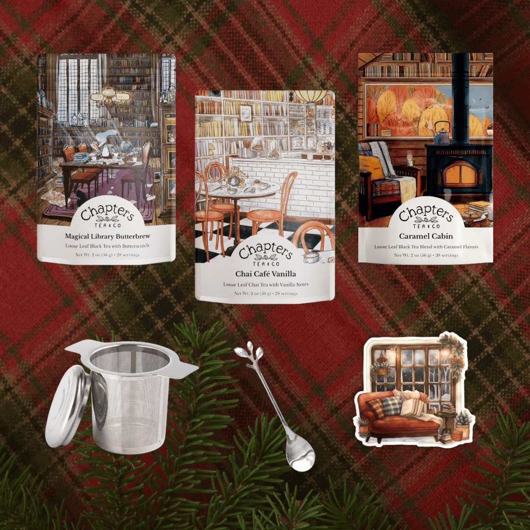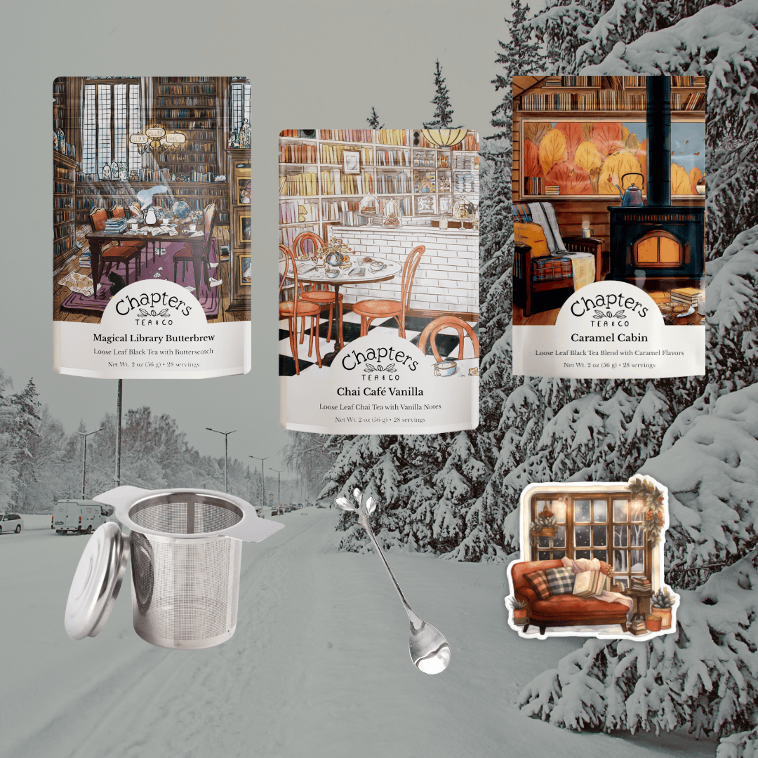 Each specially-crafted tea has its own unique story and connection to the holiday season. From the festive butterscotch of Magical Library Butterbrew (our #1 best seller), to our community favorite, Chai Café Vanilla, which is basically like a hug in a mug, finishing up with the cozy warmth of Caramel Cabin— enjoy a cup of delicious seasonal tea and snuggle up with your favorite book or movie.
