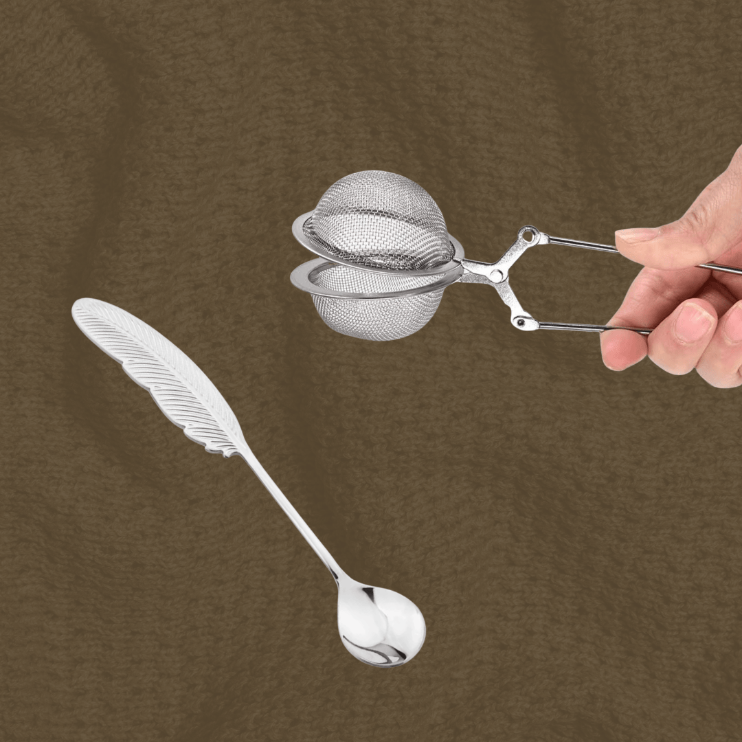 Includes a Silver Feather Teaspoon and our Mesh Ball with Handle Tea Infuser