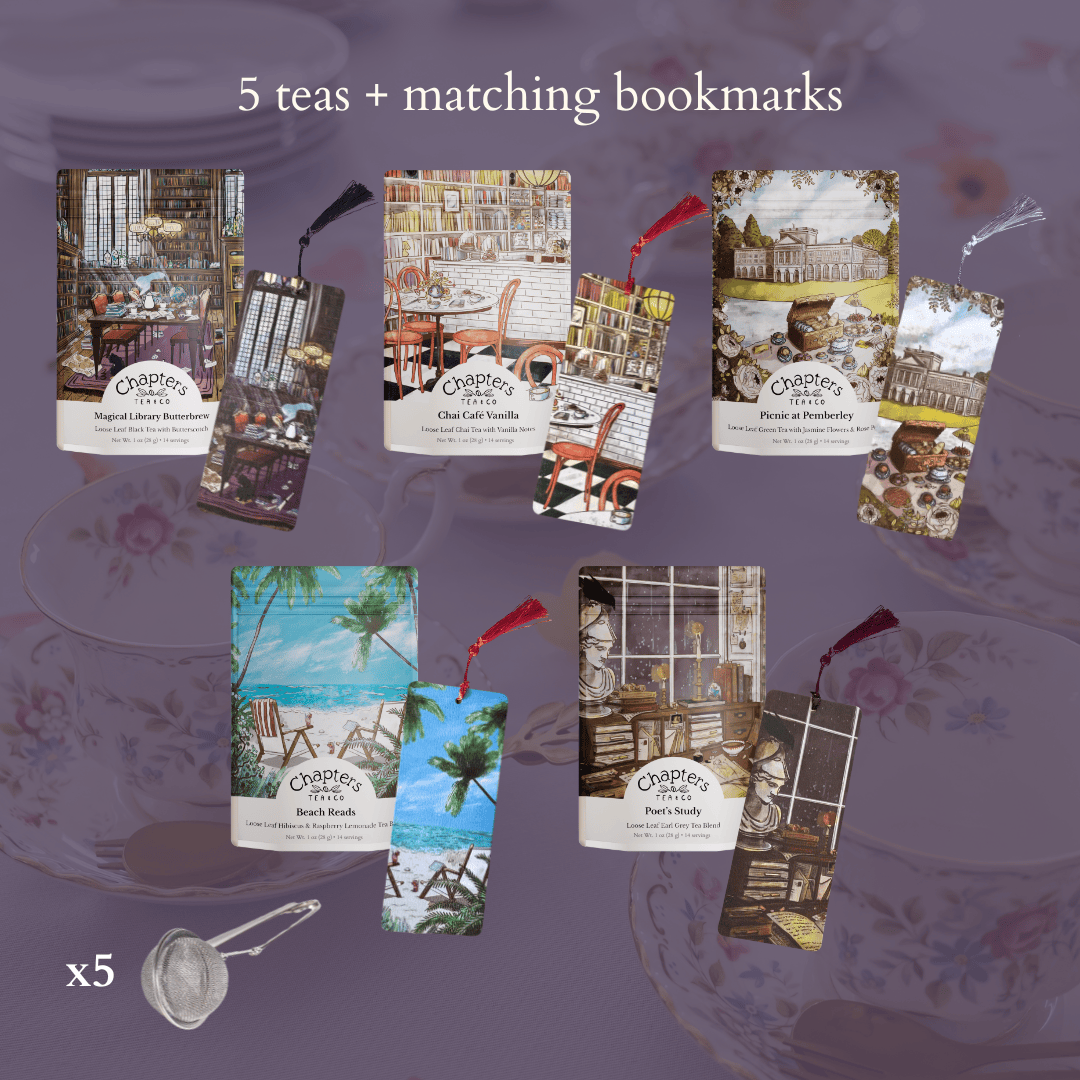 Inside, you’ll find five of our best-selling teas, each paired with its matching bookmark—because every great cup deserves a good story—and five mesh ball with handle reusable tea infusers, perfect for hosting or gifting. From bright and uplifting to cozy and indulgent, this collection brings together a little something for everyone.